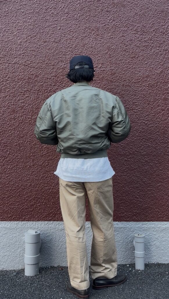 ※MA-1ではなくシルエット、形が似たL2-Bというモデルを着用してます。