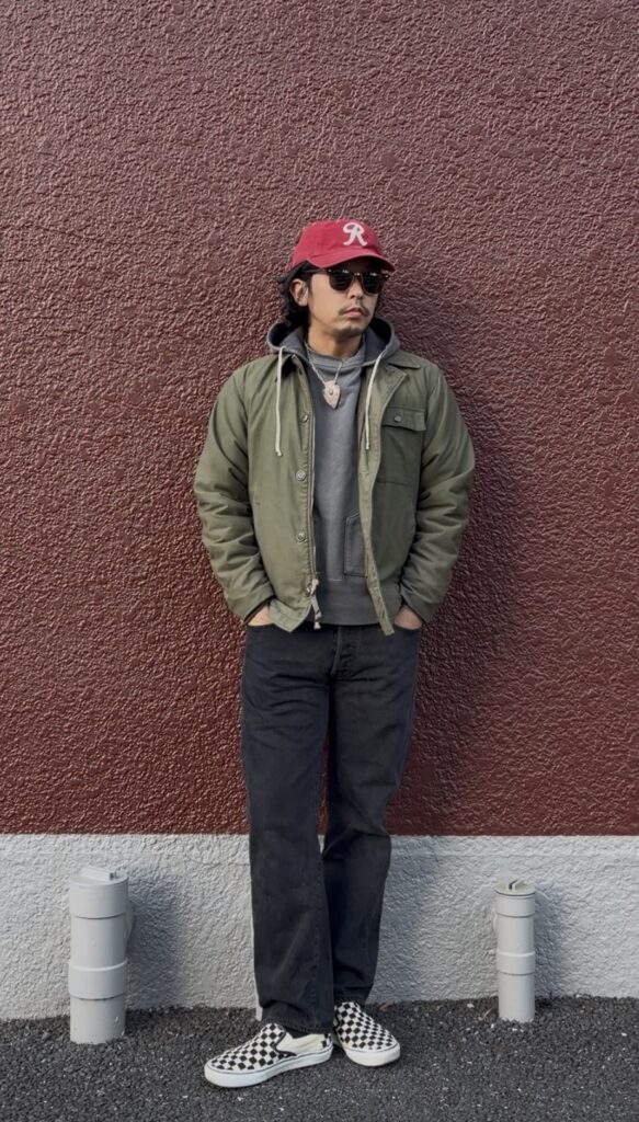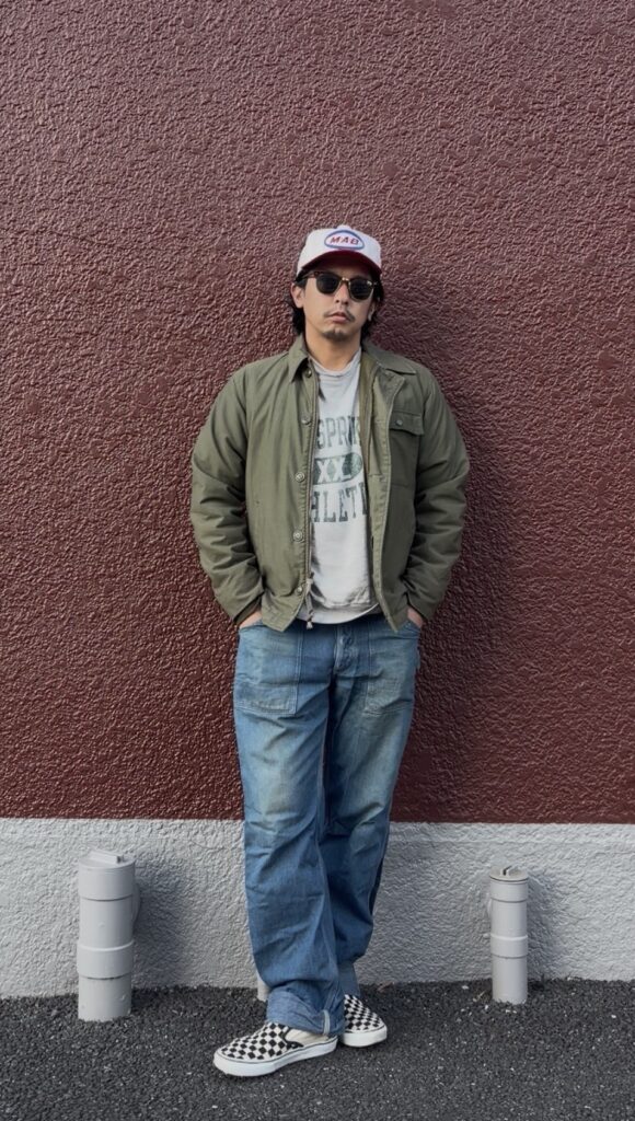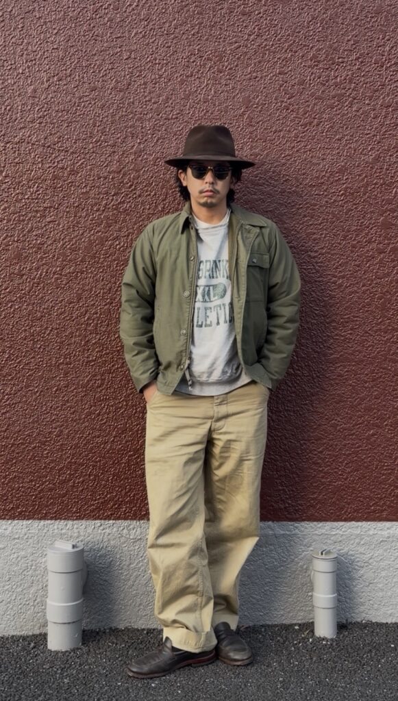 A-2デッキジャケットをワークテイストに振り切ったコーデ!