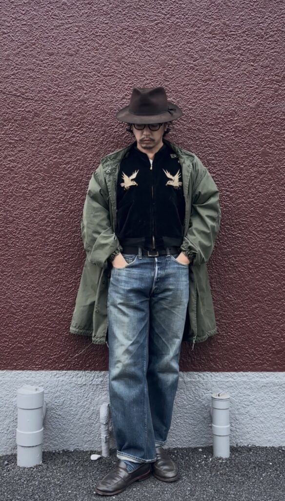 スカジャンと合わせてもバッチリハマるのがM-65モッズコート!